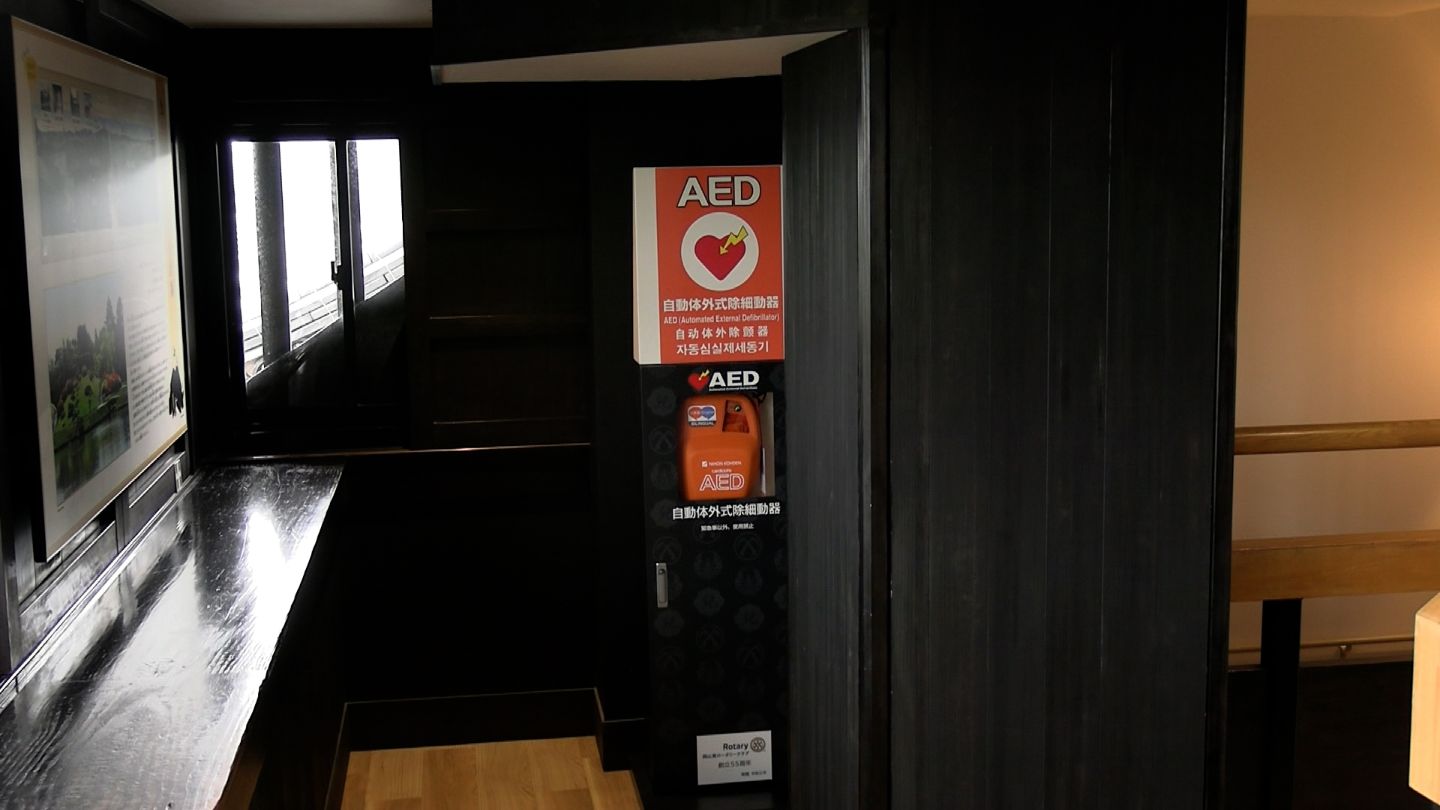 贈られたAEDは岡山城天守閣の5階に設置され、地下1階のものとあわせ2台になりました。