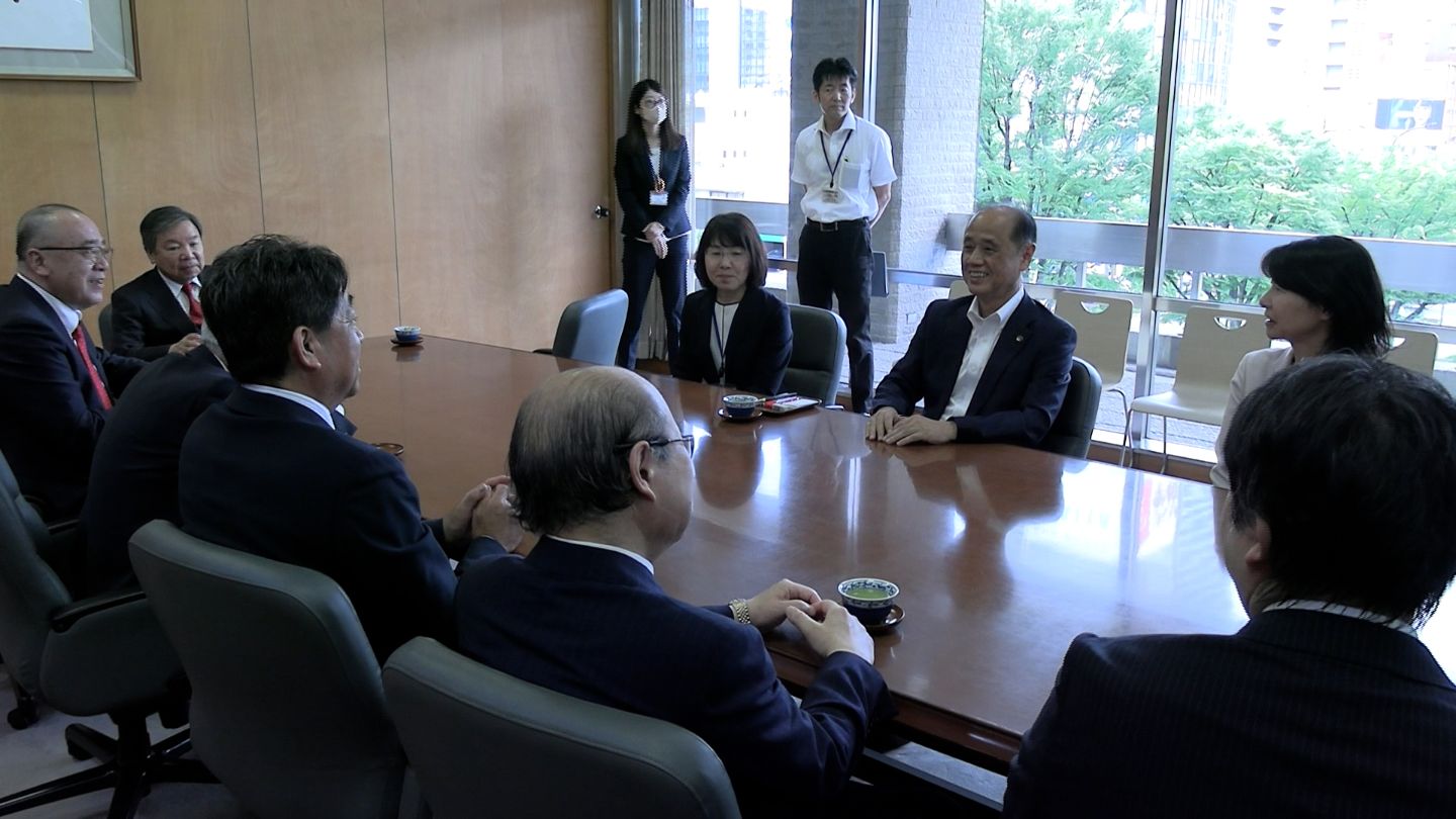 岡山市役所で贈呈式が行われ、岡山東ロータリークラブの佐々木篤会長から大森市長に目録が手渡されました。