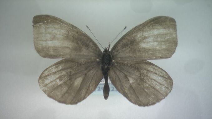 左右で羽の色が違うこちらの標本も、突然変異の1つです。