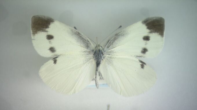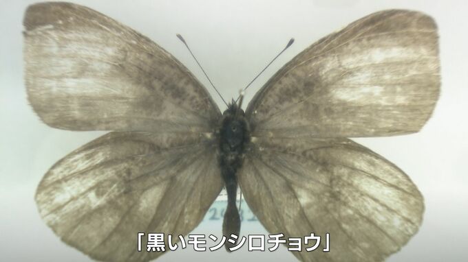 (倉敷市立自然史博物館 学芸員 奥島雄一さん)「当館が所蔵している色彩変異の突然変異の昆虫としましては、こちらの『黒いモンシロチョウ』。