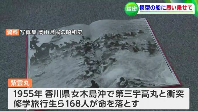 1955年、香川県の女木島沖で修学旅行生を乗せた「紫雲丸」は第三宇高丸と衝突し、168人が命を落としました。決して忘れてはならない記憶を船を通して伝えます。
