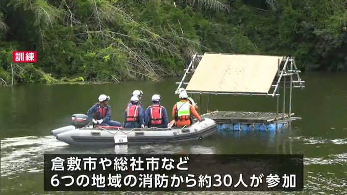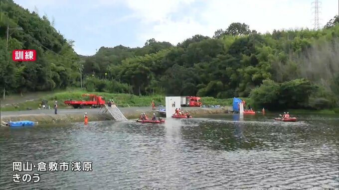 豪雨による水害の発生に備えて、岡山県の高梁川流域の6つの消防が連携して救助訓練を行いました。