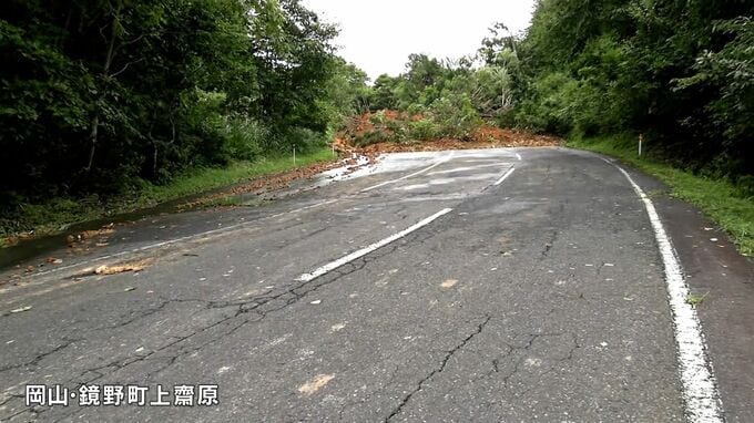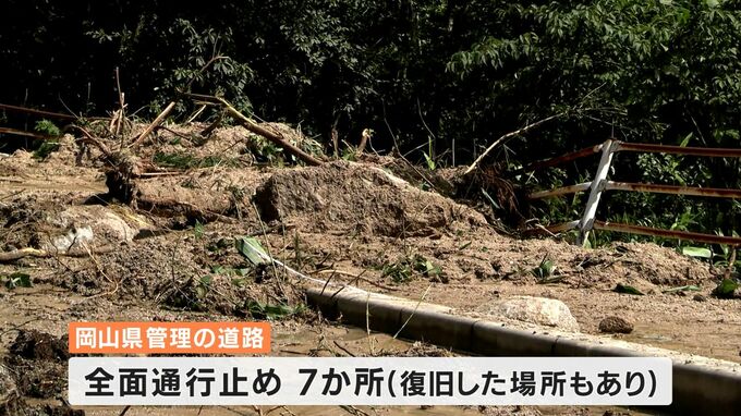 岡山県によりますと土砂崩れや冠水で全面通行止めになった道路は7か所にのぼるということです。