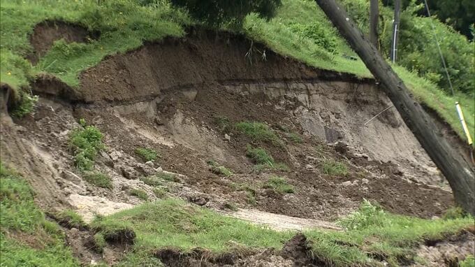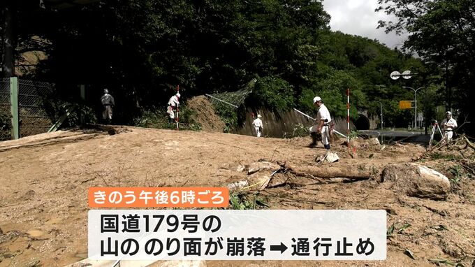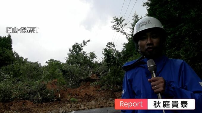 (秋庭貴泰記者)「ご覧のように土砂崩れで完全に道路がふさがっています」