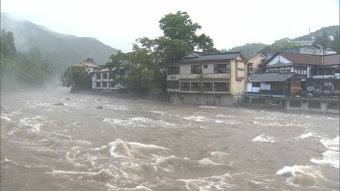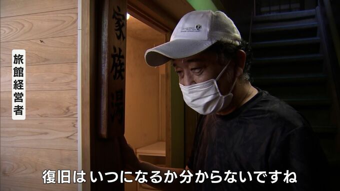(旅館の経営者)「椅子が今置いてあるんですけど、あそこまで川の水が上がっていましたんで。復旧はいつになるかわからないですね」