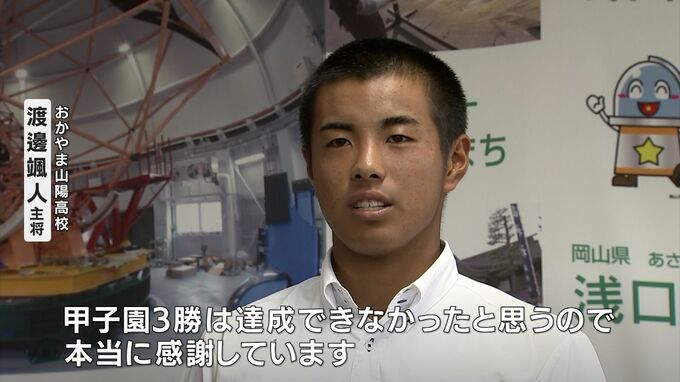 (おかやま山陽高校 渡邊颯人主将)「たくさんの声援がなかったら『甲子園3勝』は達成できていなかったと思うので、本当に感謝しています。(後輩たちには)1日1日努力して、もう1度あの場所で自分たちの記録を超えてほしい」