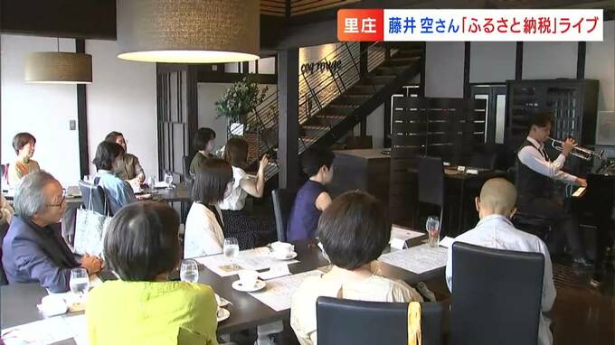 いまは神奈川で暮らす空さん。生まれ故郷の里庄町で行われたこのライブは、藤井空さんの生演奏を堪能しながら、ランチやディナーを楽しめるふるさと納税の返礼品として企画されました。7月7日から8月27日までの募集期間に約370万円が集まり、ライブはあわせて4回行われました。
