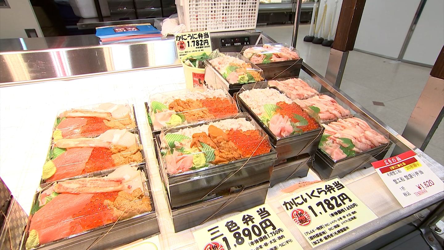 海の幸がたっぷり乗った弁当に、旬のかぼちゃを使ったスイーツなど、北海道のおいしいものが並びます。