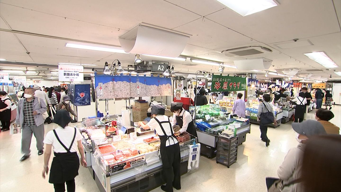 天満屋岡山店で始まった「北海道の物産と観光展」では、会期中一部を入れ替えながら、84の店が約1500種類のグルメを販売します。
