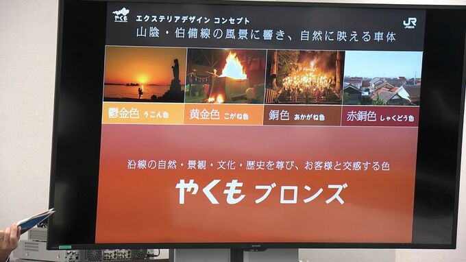 「この車両の色に込めた思いというのはやはり、『沿線地域の自分たちのアイデンティティーは何か』ということを一つにまとめたものだと思います。暖かさであり、独特の景観...赤い瓦・石州瓦のある山陰の光景、そういった風景に映えるデザインを目指しております」