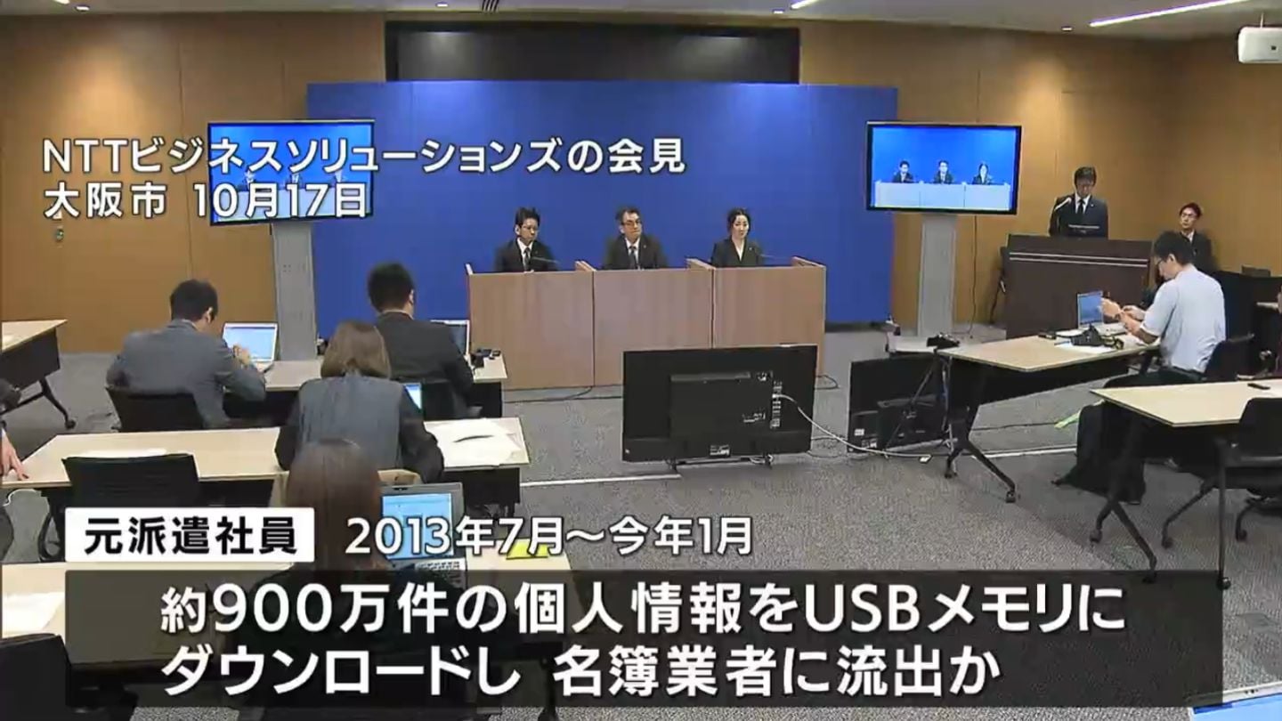この元派遣社員は、2013年7月ごろから今年1月にかけ、約900万件の個人情報をUSBメモリにダウンロードし、名簿業者に流出させたということです。