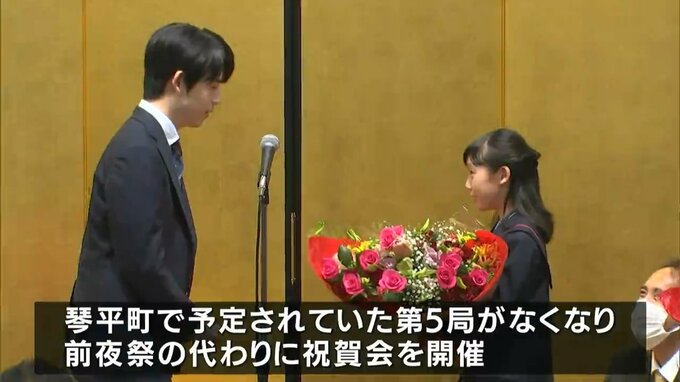 将棋の今期 竜王戦で4連勝し、八冠を防衛した藤井聡太竜王の祝賀会が、5局目の対局が行われる予定だった香川県琴平町で開かれました。