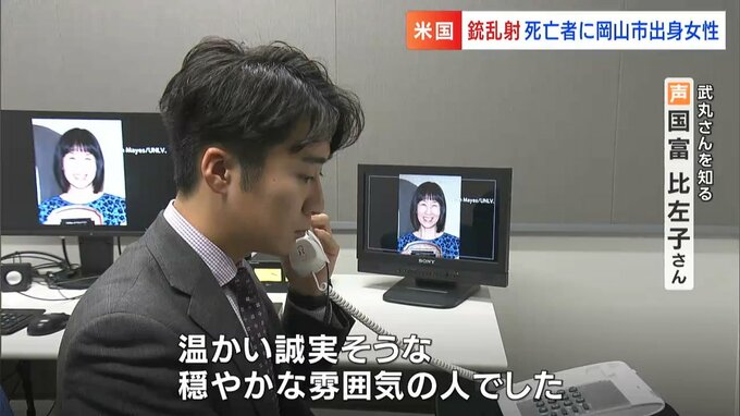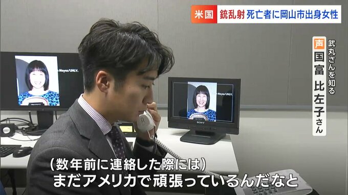 アメリカ西部ラスベガスの大学で3人が死亡した銃撃事件についてです。犠牲者の1人は岡山市出身の日本人女性だったことが分かりました。