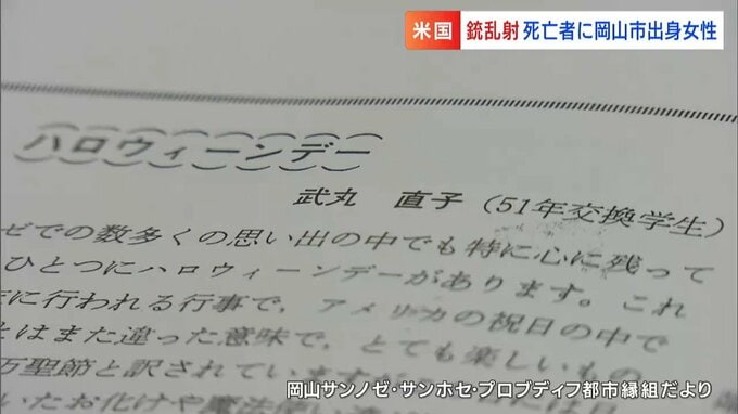 岡山市によりますと武丸さんは1976年、市の姉妹都市であるアメリカ・サンノゼ市にも交換留学で渡米していたということです。