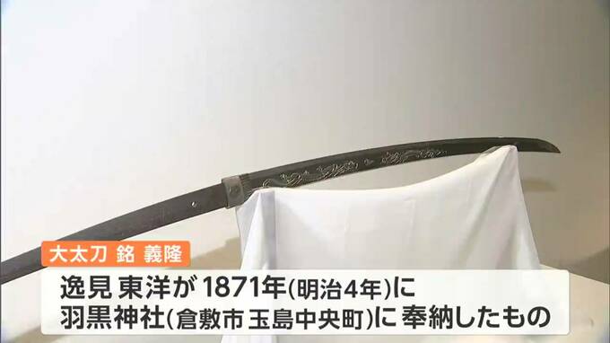 岡山出身の刀工、逸見東洋が明治初期に倉敷市の神社に奉納した大太刀が倉敷美観地区で特別公開されています。