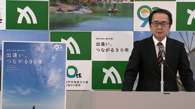 瀬戸内海国立公園・今年で指定90年 池田知事「今年は毎月100万人の観光客誘致目指す」【香川】 2024年1月15日(月) 17:30 香川 瀬戸内海が国立公園に指定されて、今年3月で90年を迎えることから、香川県は記念事業などを行うことを発表しました。瀬戸内の「海」と「島」などを表現したロゴマークです。瀬戸内海国立公園が指定90周年を迎える…