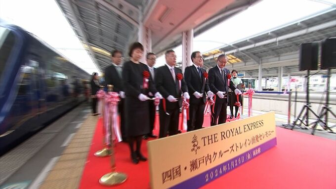 ツアー料金1人96万円の高級観光クルーズ列車が瀬戸内を走ります。東急がJR四国などと協力して運行する「THE ROYAL EXPRESS」の出発式が香川県高松市のJR高松駅で開かれました。