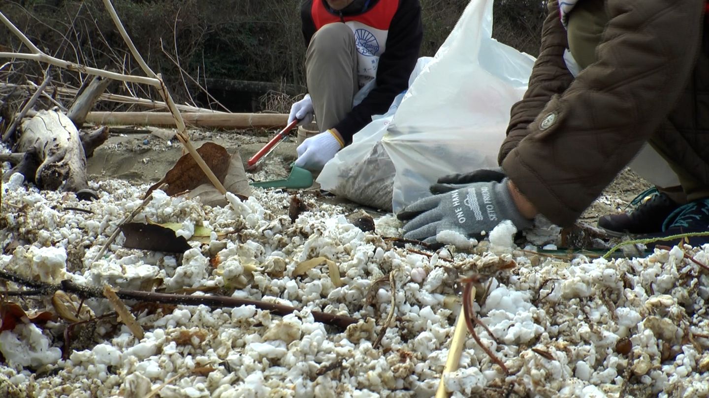 牡蠣の養殖が盛んな江田島市では、イカダを浮かせるためのフロートが海岸に流れついてごみとなっていることが問題視されています。