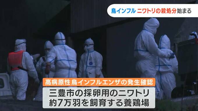 三豊市の養鶏場で、高病原性の鳥インフルエンザの発生が確認されました。けさ(6日)からニワトリの殺処分などの防疫措置が行われています。
