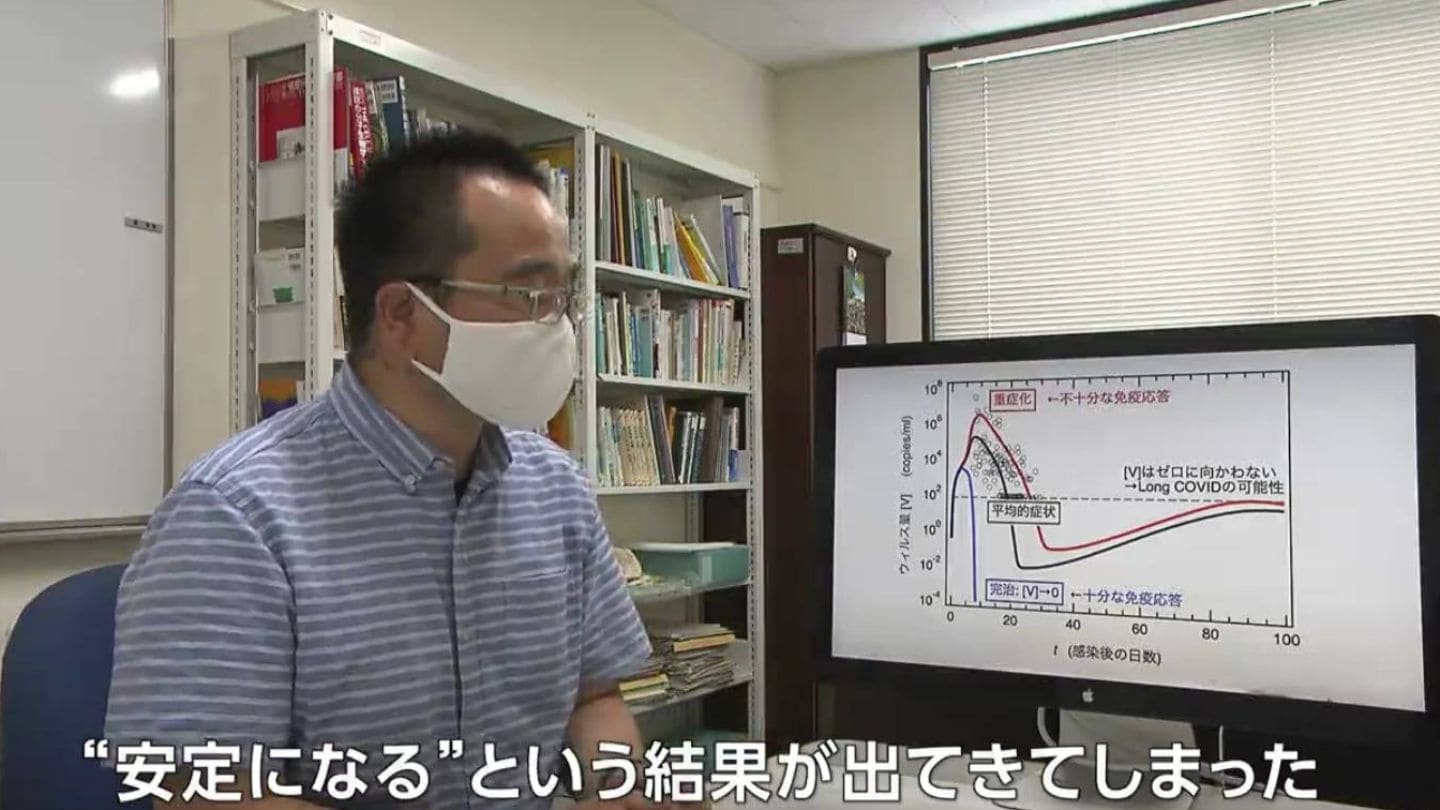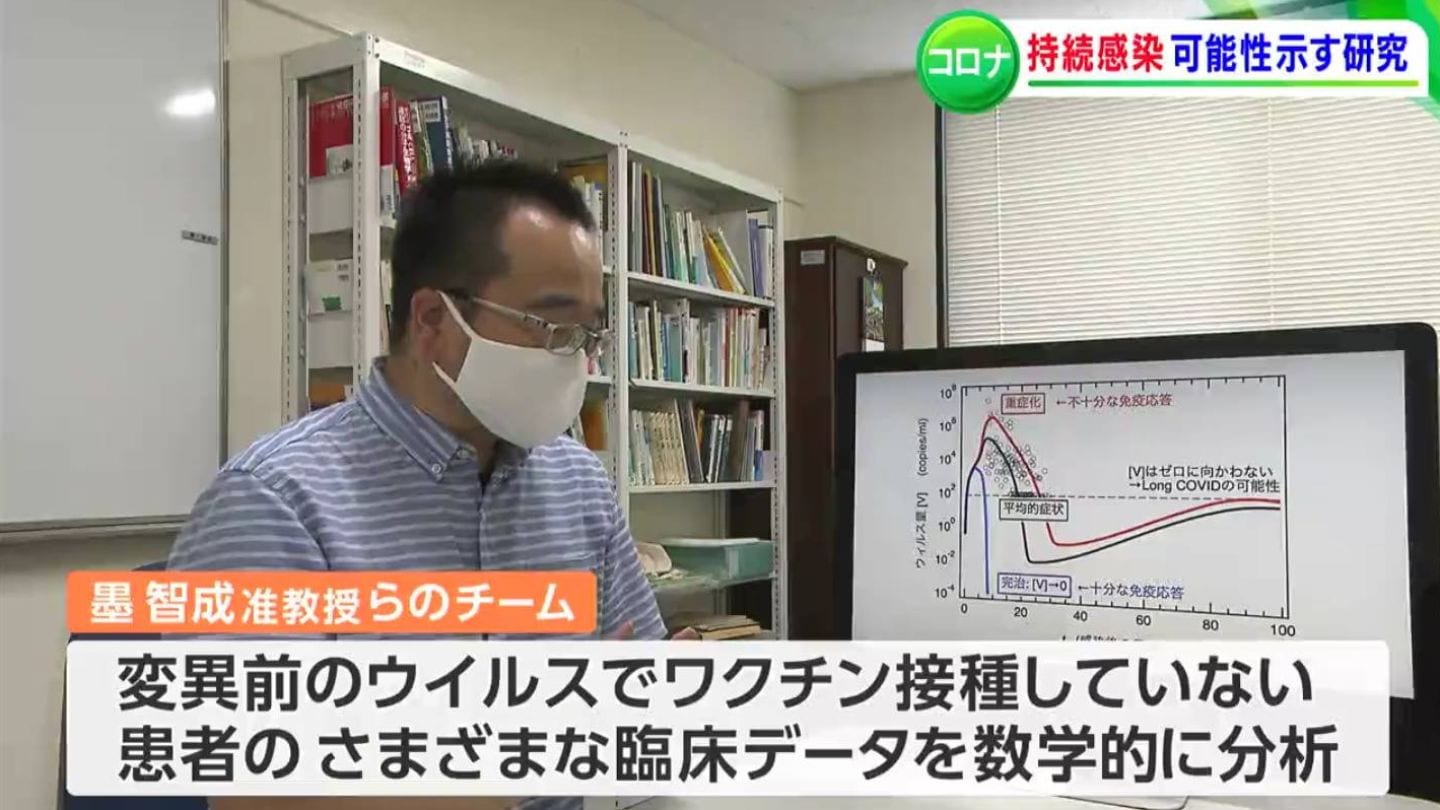物理・化学が専門の墨智成准教授。変異前のウイルスで、ワクチン接種をしていない患者の様々な臨床データを数学的に分析した結果、回復後、検査で陰性になった後も、ウイルスが体内に残り続ける”持続感染が起きていている可能性がある”と発表しました。