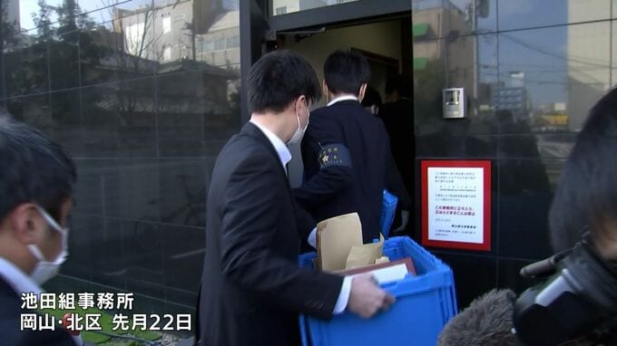 「愛媛県警の捜査員が、岡山市北区の池田組事務所の中に入っていきます」