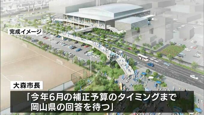岡山県に費用の一部負担を求めていたものの現在まで明確な回答がないためで、大森雅夫岡山市長は「今年6月の補正予算のタイミングまで回答を待つ」との姿勢を明らかにしました。