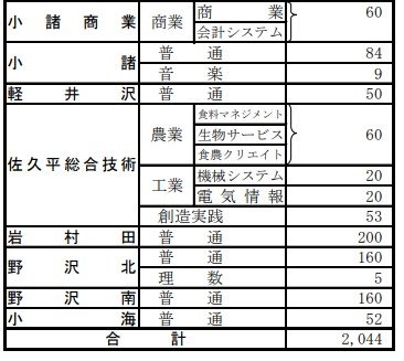 【全校一覧掲載】長野県公立高校入試後期選抜2024「募集人員」…長野280人、上田320人、諏訪清陵160人、松本深志320人