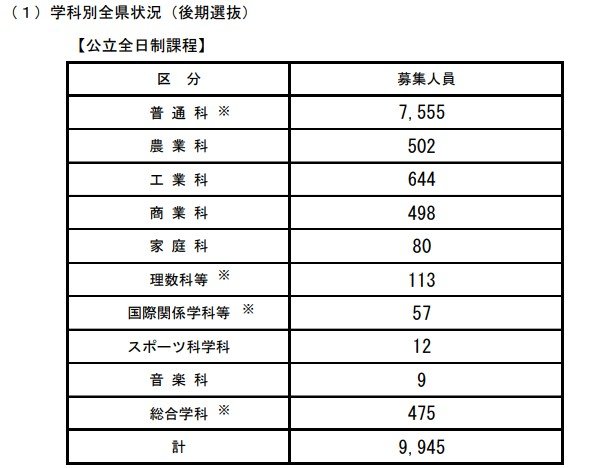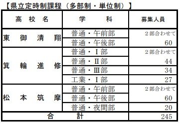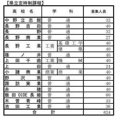 【全校一覧掲載】長野県公立高校入試後期選抜2024「募集人員」…長野280人、上田320人、諏訪清陵160人、松本深志320人