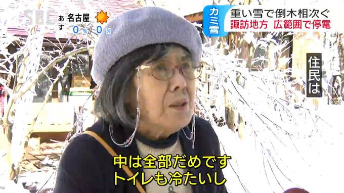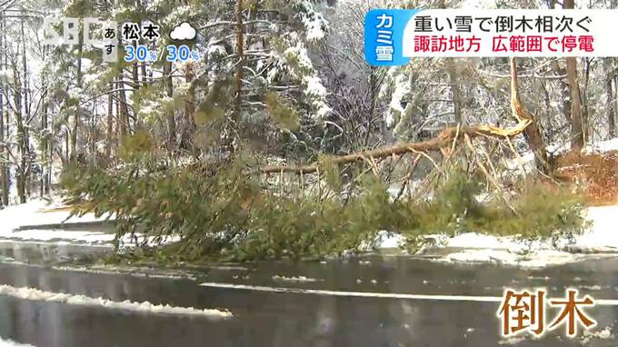 25日から26日未明にかけて、長野県の中南部を中心に降った雪の影響で、諏訪地方では倒木が相次ぎ、広い範囲で停電が発生しました。