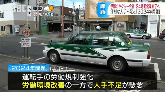 「夜中に具合が悪くなったときに困る…」2024年問題への対応で伊那市のタクシー会社2社が24時間営業から撤退、4月から原則平日未明の運行を停止「どこかをカットしないとできない状況」 2024年2月27日(火) 21:00 国内 いわゆる「2024年問題」に対応するため、伊那市のタクシー会社が24時間営業から撤退することを決めました。24時間営業から撤退するのは伊那市の伊那タクシーと白川(しらかわ)タクシーです。タクシーなどの運輸業…