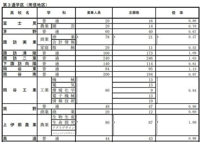 【最終志願倍率】全校一覧掲載…長野県公立高校入試後期選抜2024出願者まとめ…松本県ヶ丘自然探究・国際探究2.75倍、飯田理数2.58倍、長野西国際教養・伊那北理数2.25倍