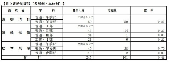 【最終志願倍率】全校一覧掲載…長野県公立高校入試後期選抜2024出願者まとめ…松本県ヶ丘自然探究・国際探究2.75倍、飯田理数2.58倍、長野西国際教養・伊那北理数2.25倍 2024年2月29日(木) 16:45 国内