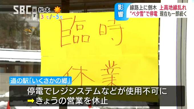 道の駅は臨時休業「トイレも自販機も使えなくて…」重く湿った雪で倒木、停電、代行運輸も… 広い範囲で影響 2024年3月1日(金) 18:27 国内 昨夜からけさにかけて降った重く湿った雪で、アルピコ交通上高地線では倒木で一部区間が運休したほか、松本や大町など広い範囲で停電が発生しました。雪の重みで幹(みき)が折れ、横倒しになった木。線路脇の斜面…