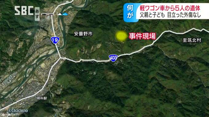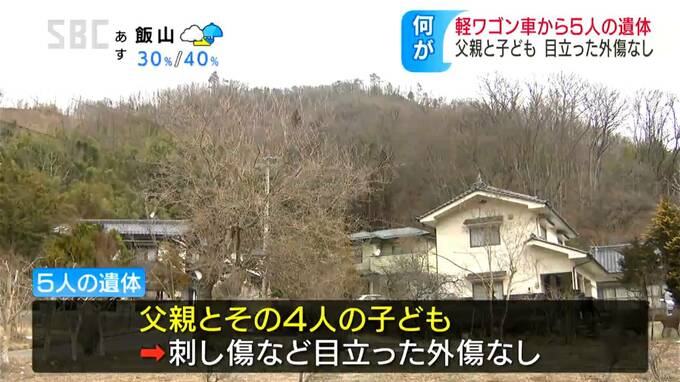 安曇野市で3日、止まっていた軽ワゴン車から、5人の遺体が見つかった事件で、遺体は、父親とその4人の子どもで、目立った外傷はなかったことがわかりました。