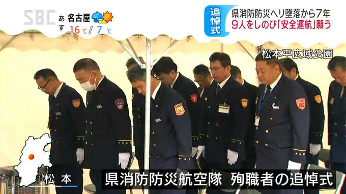 「仕事での活躍が死んだ人たちの供養に」遺族も参列安全運航誓う…9人全員が死亡、消防防災ヘリ墜落事故7年で追悼式 2024年3月5日(火) 18:22 国内 県の消防防災ヘリが墜落し、9人が死亡した事故から5日で7年です。松本市では追悼式が行われ、遺族などが安全運航を願いました。「黙とう」松本平広域公園の慰霊碑前で開かれた式には、遺族や消防の関係者などおよそ…