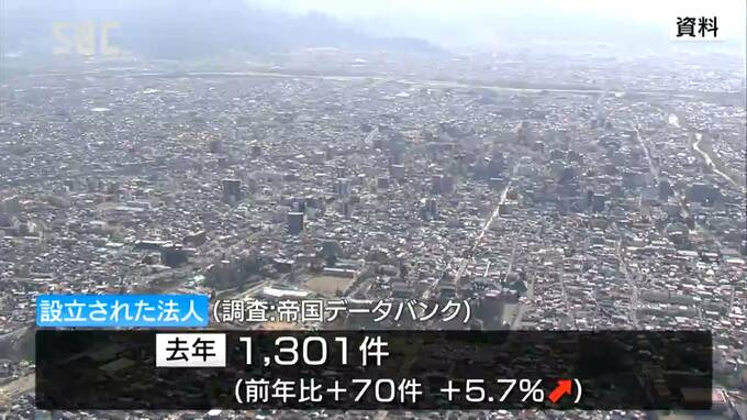 帝国データバンクのまとめによりますと、2023年、県内で設立された法人の数は1301件で、2022年を70件、5.7%上回りました。