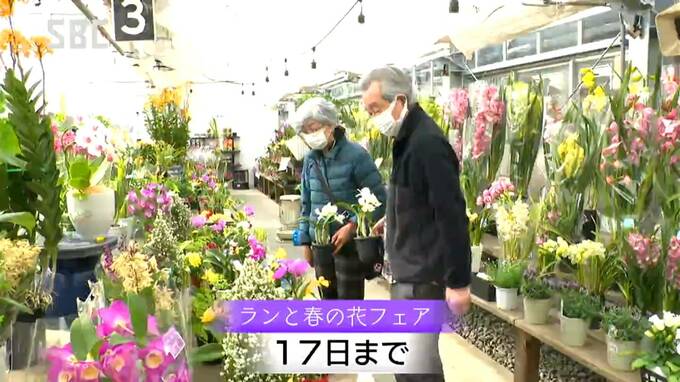 「ランと春の花フェア」は、伊那市の産直市場グリーンファームで17日まで開かれています。