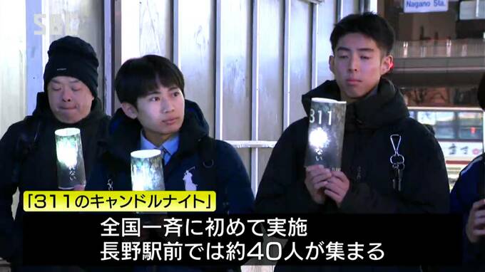 キャンドルナイトは全国一斉に初めて行われ、長野駅前では、およそ40人が集まり、被災地に思いを寄せていました。