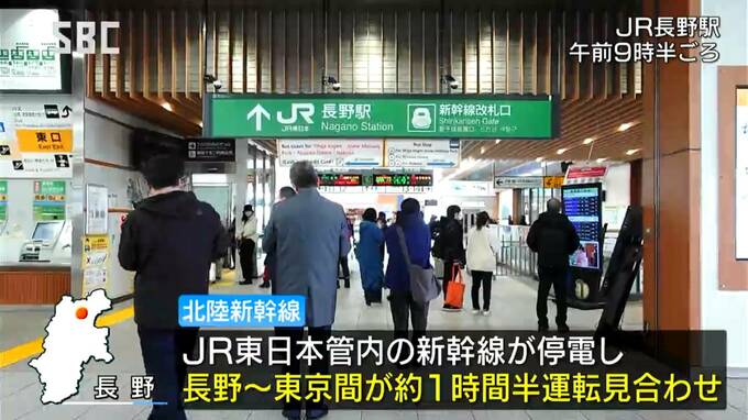 この地震の影響で、JR東日本管内の新幹線で停電が発生し、北陸新幹線が長野と東京の間でおよそ1時間半にわたって運転を見合わせましたが、午前10時41分に運転を再開しました。