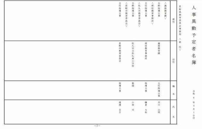 先生はどこへ…?4月1日付け公立小中学校などの「教職員人事」長野県教育委員会が発表