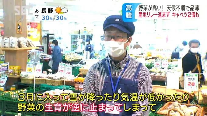 (ファーム大澤屋 坂口店長)「ほぼ全てが品薄状態。2月が全体的に暖かく野菜の生育が進んでしまって、3月に入って雪が降ったり気温が低かったりして野菜の生育が逆に止まってしまった」