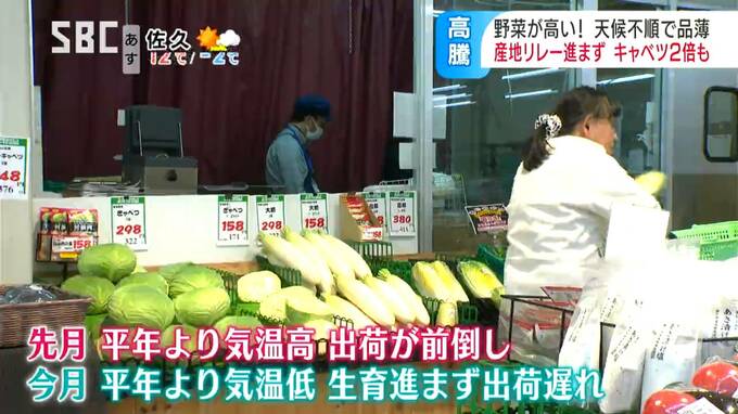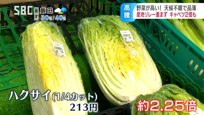 次の産地への移行が進まず、特に葉物野菜の品薄と高騰が続いているといいます。