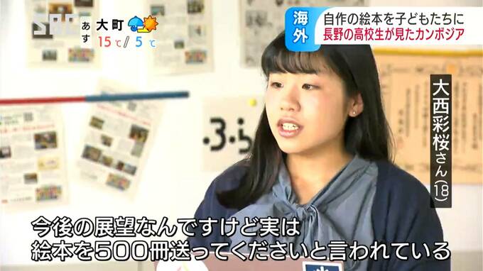 「今後の展望なんですけど、実はもう絵本を500冊送ってくださいとカンボジアの方から言われているので、今年の9月をめどに届けにいこうかと思っています」