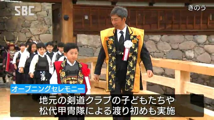 完成を記念し、3日はオープニングセレモニーが開かれ、地元の剣道クラブの子どもたちや、松代甲冑隊が渡り初めを行いました。