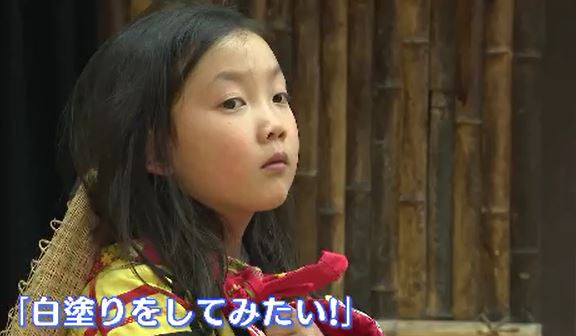 中心人物の女性の娘役に、7歳の女の子が初挑戦しました。