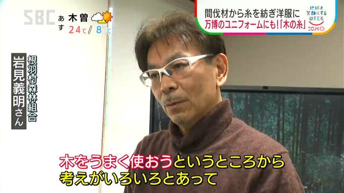 長野県根羽村森林組合ではおよそ3年前から、間伐されたスギの木を天然繊維の「木の糸」に生まれ変わらせる取り組みを行っています。