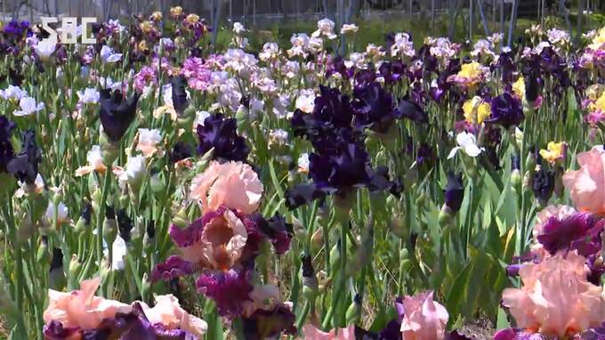 松本市郊外の観光農園でジャーマンアイリスなど初夏の花々が見頃を迎えています。
