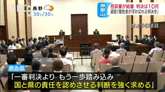 2014年に起きた御嶽山噴火災害の犠牲者の遺族などが、国と県に損害賠償を求めた裁判の控訴審が22日、結審しました。