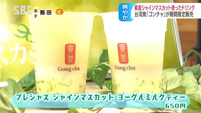 タピオカドリンクで有名な台湾発のティーブランド「ゴンチャ」が、長野県産のシャインマスカットを初めて使った期間限定の飲み物を発表しました。