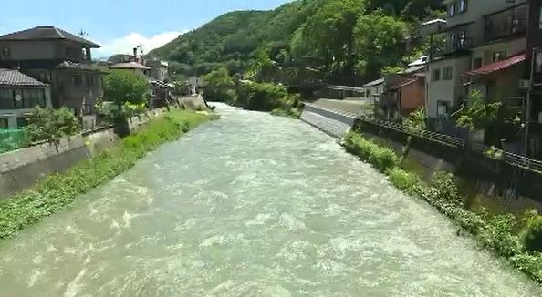 「足元を流れる木曽川は増水し、水が勢いよく流れ続けています」